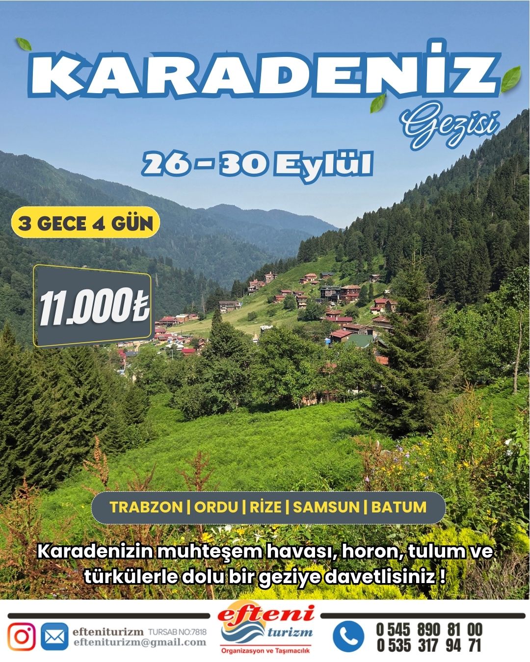 Haraket noktamız saat 16:00 da Düzce Kent Park yanı EFTENİ TURİZM Ofis önündendir.Yolda verilecek molalar ile TRABZON a doğru yolculuğumuz başlıyor.